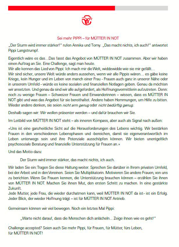 • MÜTTER IN Not ist eine Beratungsstelle des Katholischen Frauenbundes St.Gallen – Appenzell. Sie wurde 1979 gegründet und ist vom Bistum St.Gallen als Hilfswerk anerkannt.